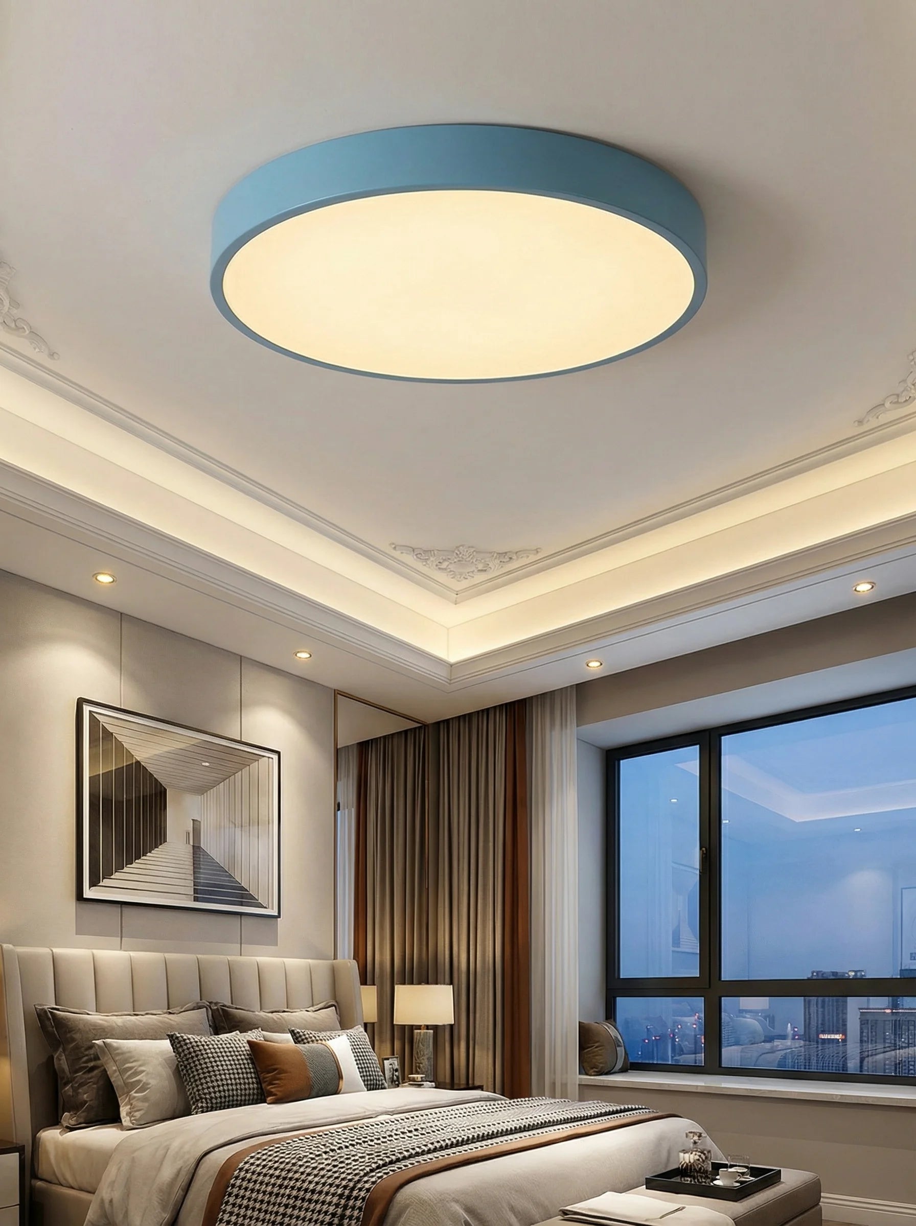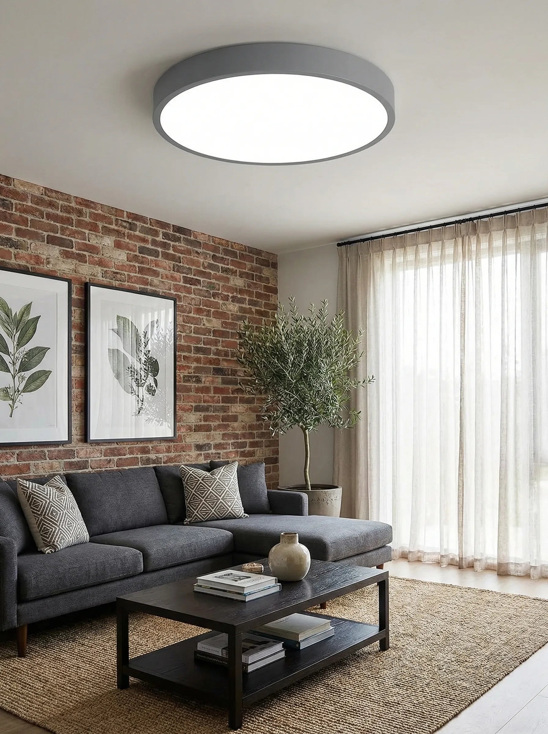 This ceiling light fixture is designed to provide balanced overhead lighting in kitchens, bedrooms, and living areas. The round flush mount format blends cleanly into contemporary interiors while delivering even illumination across the room.